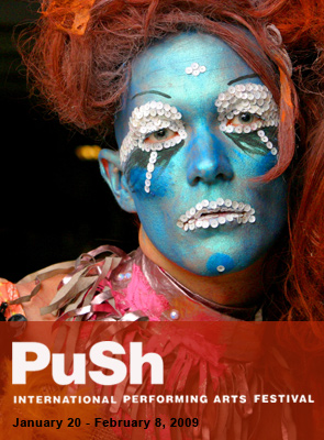 Seriously, sometimes theatre marketing is all in the titles. Tonight’s line up at Club PuSh (the temporary entertainer’s lounge set up on Granville Island for the duration of the festival that I wish was a real bar in Vancouver all year round) jumps right off the page.